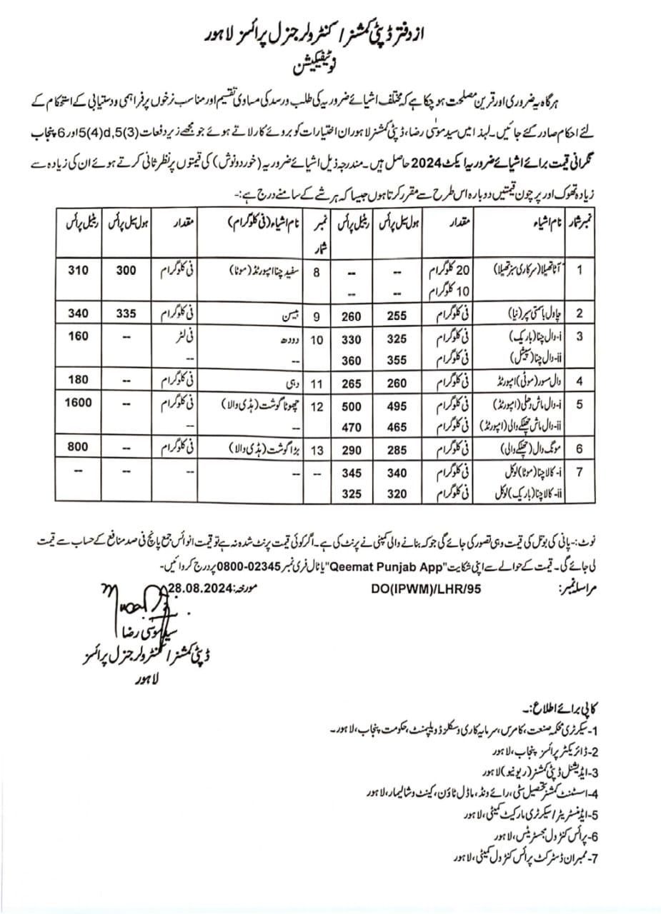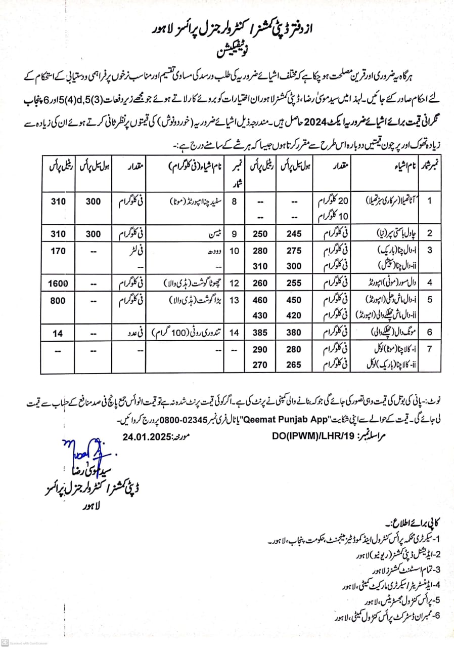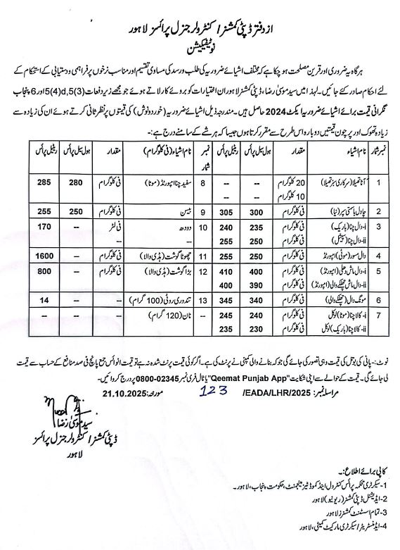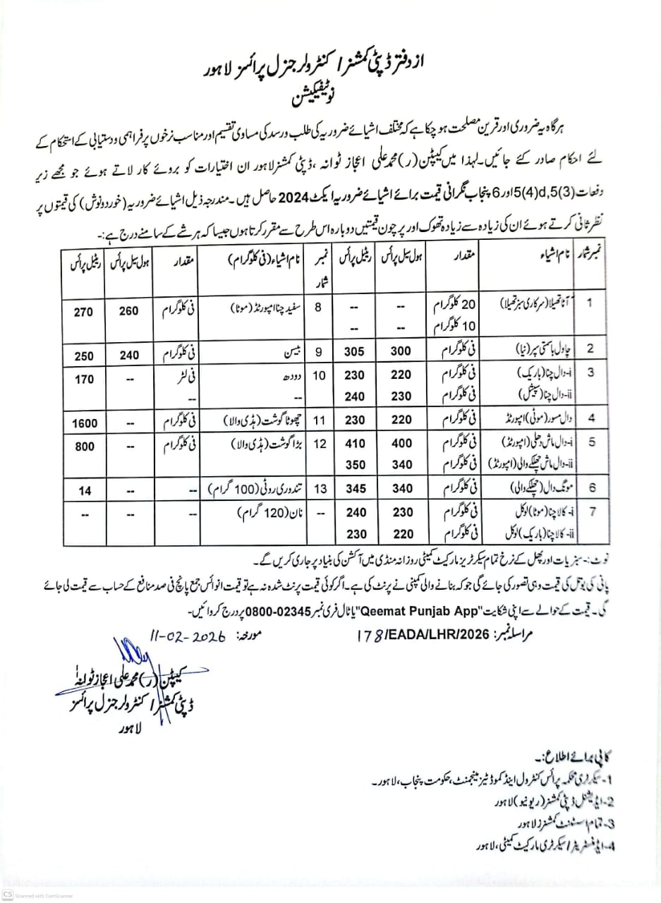 Essential Commodities Rate List